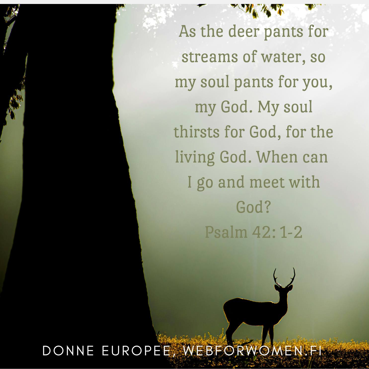 Psalm 42: 1-2 “As the deer pants for streams of water, so my soul pants for you, my God. My soul thirsts for God, for the living God. When can I go and meet with God?”